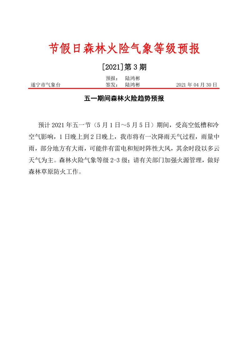 五一期间森林火险趋势预报