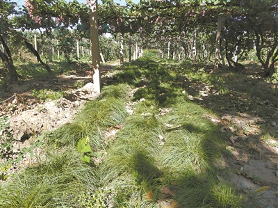2019—2020年冬春季节,北京市农林科学院在河北省怀来县葡萄园区开展了种草覆盖对地表风蚀防治效果研究。在试验区葡萄架下条状种植披针叶苔草、小叶型白三叶、多年生黑麦草、苜蓿等4种草本植物,葡萄园边界种植防风草篱,以传统葡萄种植(葡萄架下为裸地)为对照。结果显示:试验区采用防风草篱与条状种草覆盖措施后,近地表风速下降23%—42%,风蚀量下降38%,输沙通量平均下降超过45%,表层土壤碳氮损失量分别下降65.1%和37.9%。由此可见,林下种草的措施可以覆盖林地裸露地表,不仅有助于保持土壤水分,还能有效降低风速,减少风沙,减轻风沙对土壤的侵蚀。林下种草,对于高质量完成国土绿化任务,能够起到事半功倍的效果。