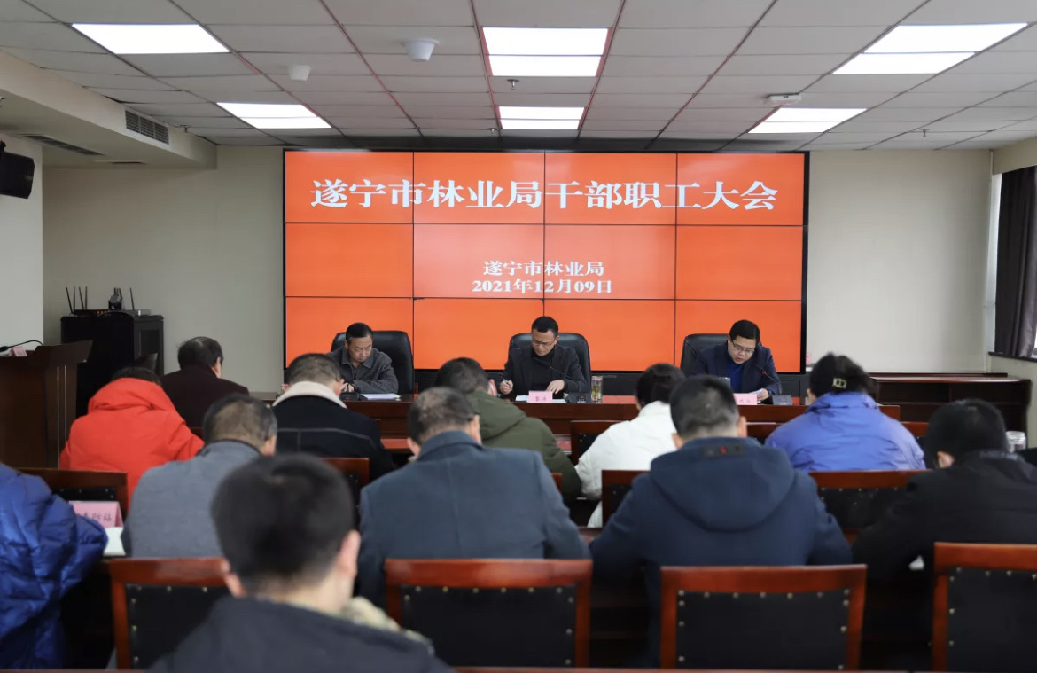 12月9日,遂宁市林业局召开干部职工大会,传达学习省委十一届十次全会精神,研究部署贯彻落实措施。市林业局党组书记、局长黎涛主持会议并讲话。