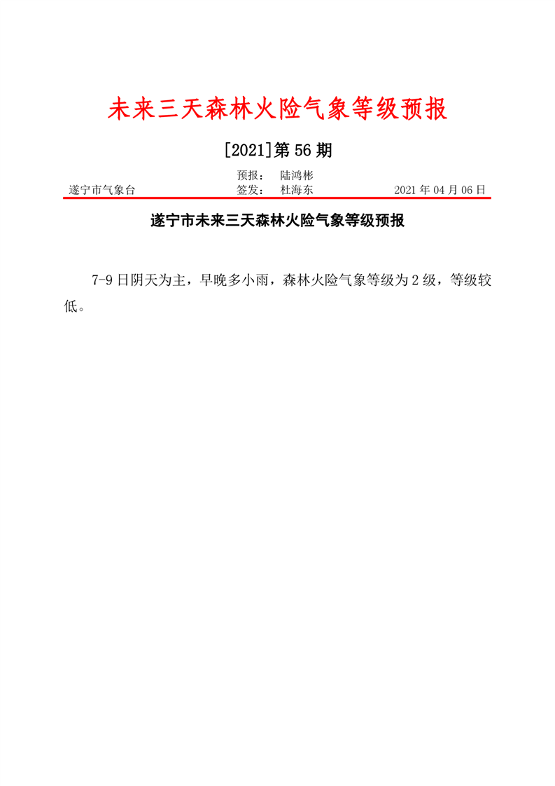 未来三天森林火险气象等级预报