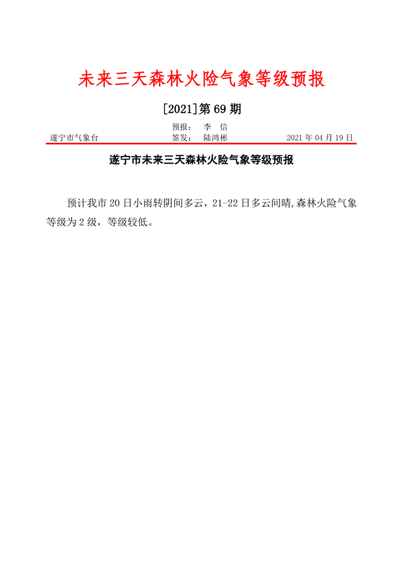 未来三天森林火险气象等级预报