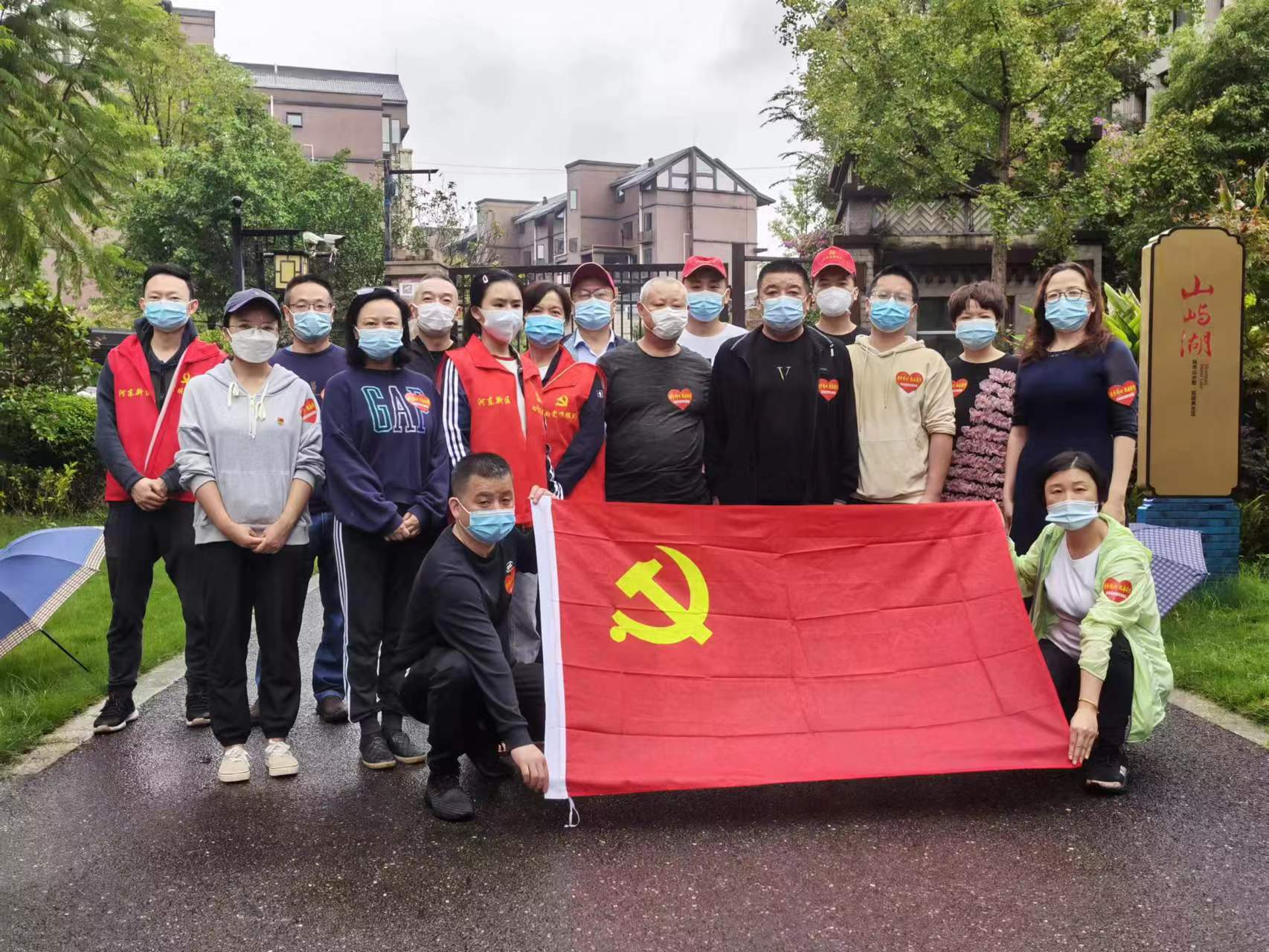 党旗飘扬,他们是小区的志愿者,团结带领党员群众积极投身疫情防控战场。