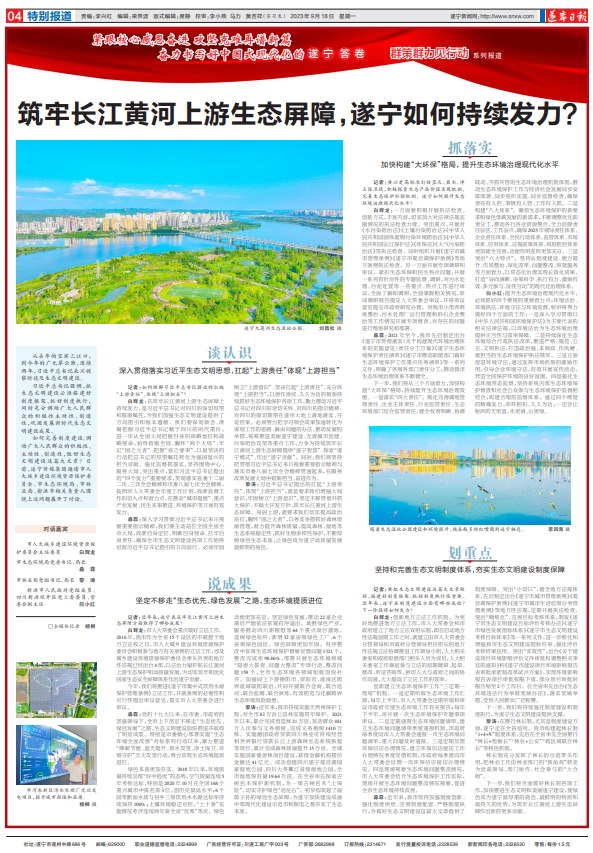 记者:近年来,遂宁在筑牢长江黄河上游生态屏障方面取得了哪些成果?