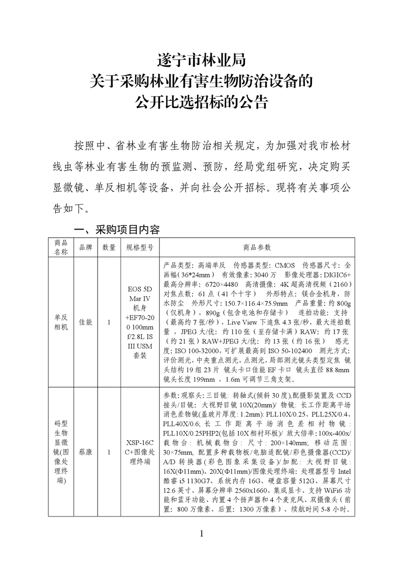 遂宁市林业局 关于采购林业有害生物防治设备的 公开比选招标的公告