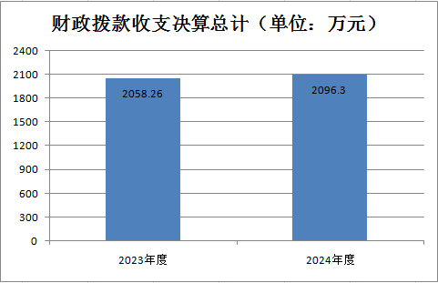 2024年度财政拨款收、支总计均为2096.30万元。与2023年度相比,财政拨款收、支总计各增加38.04万元,增长1.85%。主要变动原因一是行政人员、事业人员退休3人,减少了相关支出;二是2024年下达的中省项目资金较2023年有所增长。